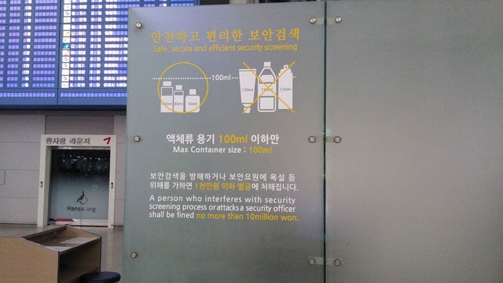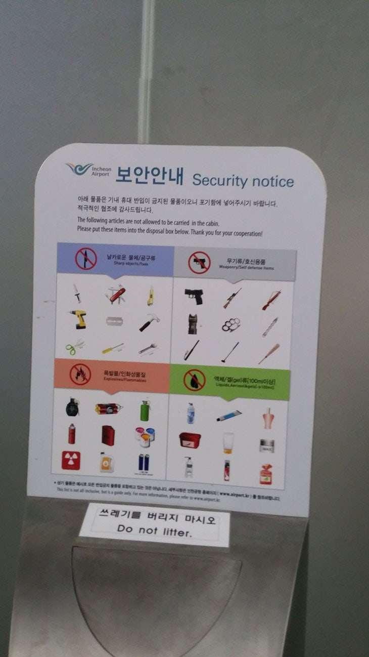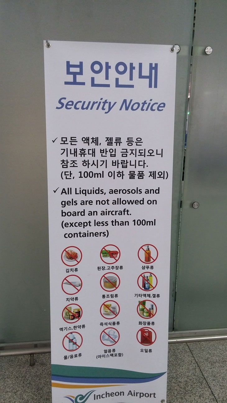 출국장으로 들어가기전에 출국장 앞에는 기내에 반입이 안되는 위와같은 내용의