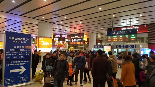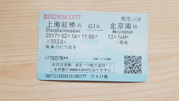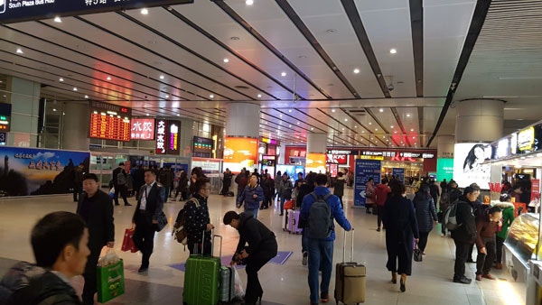 북경으로 가기위해서 2월16일에 상해홍교기차역에서